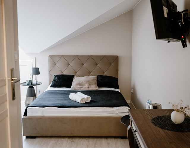 „Arka Sale Bankietowe” oferuje nie tylko znakomite miejsce do organizacji imprez, ale również komfortowe warunki noclegowe. Do dyspozycji naszych Gości oddajemy łącznie pięć pokoi i jeden apartament, mogące zapewnić nocleg dla 14 osób. Każdy pokój wyposażony jest w łazienkę, gwarantując prywatność i wygodę.