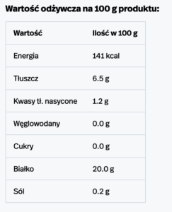 Ryby (łosoś). Może zawierać śladowe ilości mleka, soi, selera, gorczycy, orzechów (migdały) – w zależności od wyposażenia zakładu produkcyjnego.