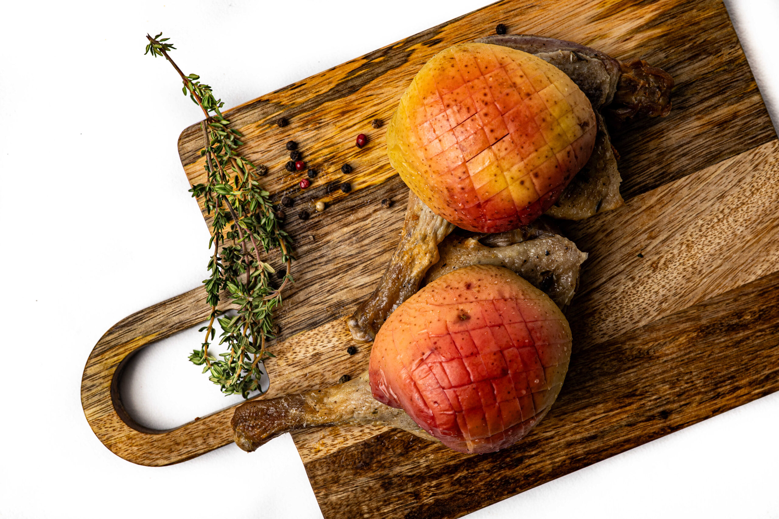 Noga z kaczki z żurawiną i pieczonym jabłkiem – 2szt (450g)