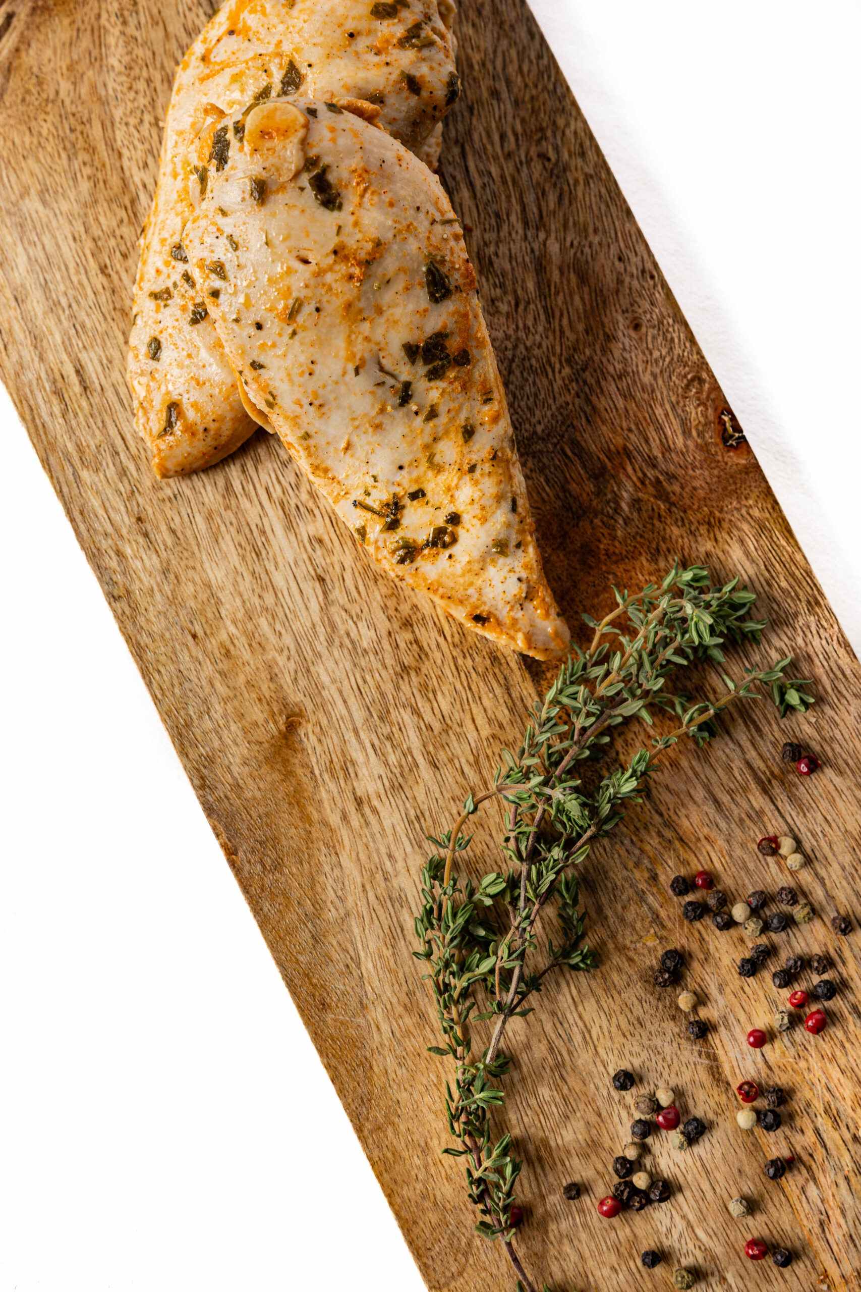 Nasza pierś z kurczaka przygotowywana jest w zaawansowanym technologicznie piecu konwekcyjno-parowym. Dzięki precyzyjnemu połączeniu gorącego powietrza i pary wodnej, mięso zamyka w sobie wszystkie soki, pozostając niezwykle delikatne i miękkie w środku, a jednocześnie zyskuje delikatnie „grillowany” charakter na zewnątrz. To idealna, zdrowa porcja białka do Twojego obiadu.