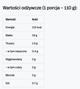 Brak alergenów w składzie. Przygotowywana w lokalu, w którym wykorzystuje się również gluten, jaja, mleko, seler i gorczycę.