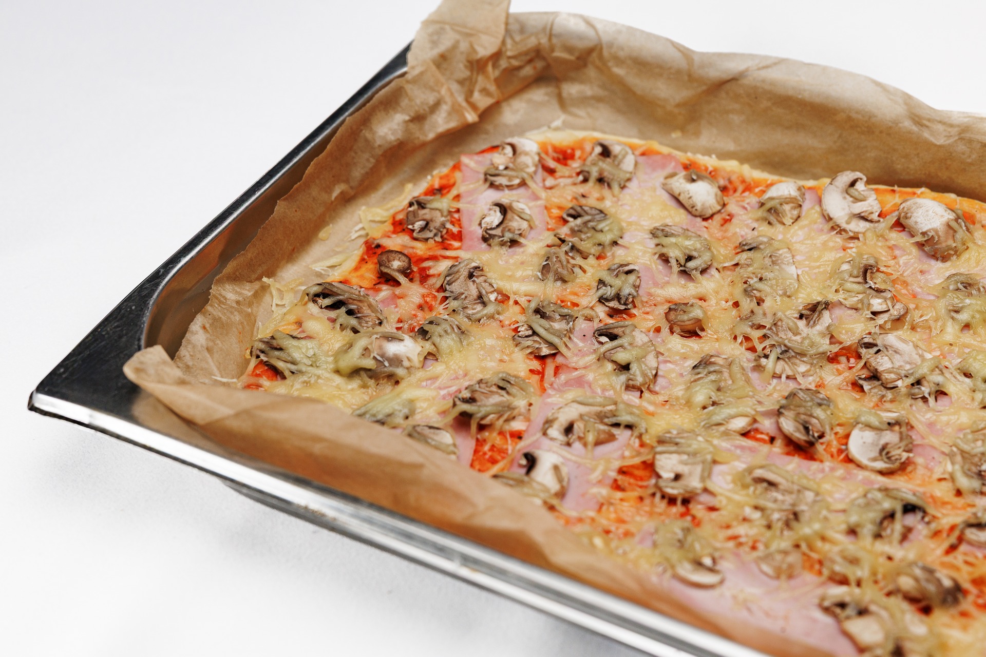 Pizza z serem, szynką i pieczarkami