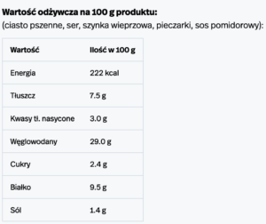 Gluten (pszenica), mleko (ser), soja (może być obecna w cieście lub szynce), seler (może być w przyprawach do sosu lub szynki). Może zawierać śladowe ilości jaj, gorczycy, orzechów (migdały).