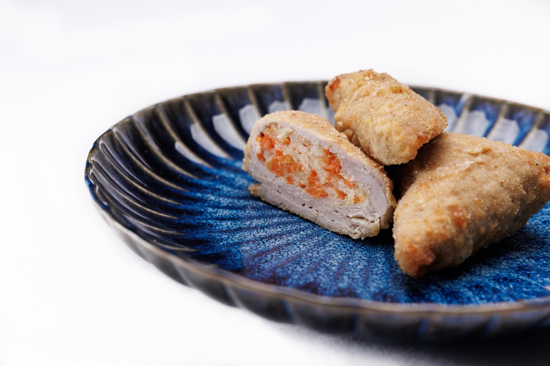 Schab wieprzowy faszerowany marchewką, pietruszką, selerem, cebulą, masłem i żółtym serem. Panierowany, smażony na złocisto, gotowy do odgrzania.